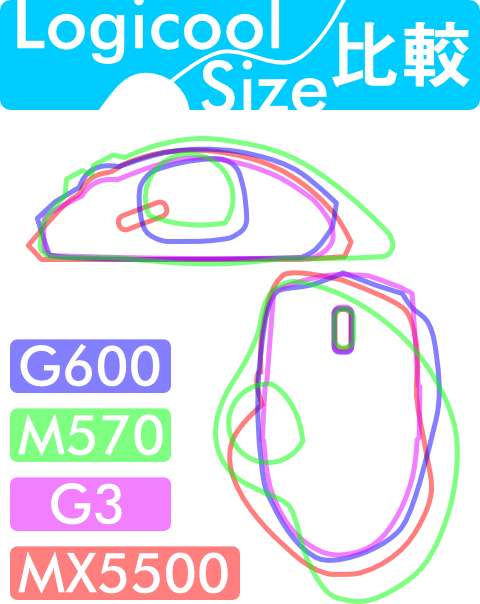 写真だけでは伝わり辛いサイズを、私が持ってるロジクール製マウスとの比較でお伝えしたいと思います。