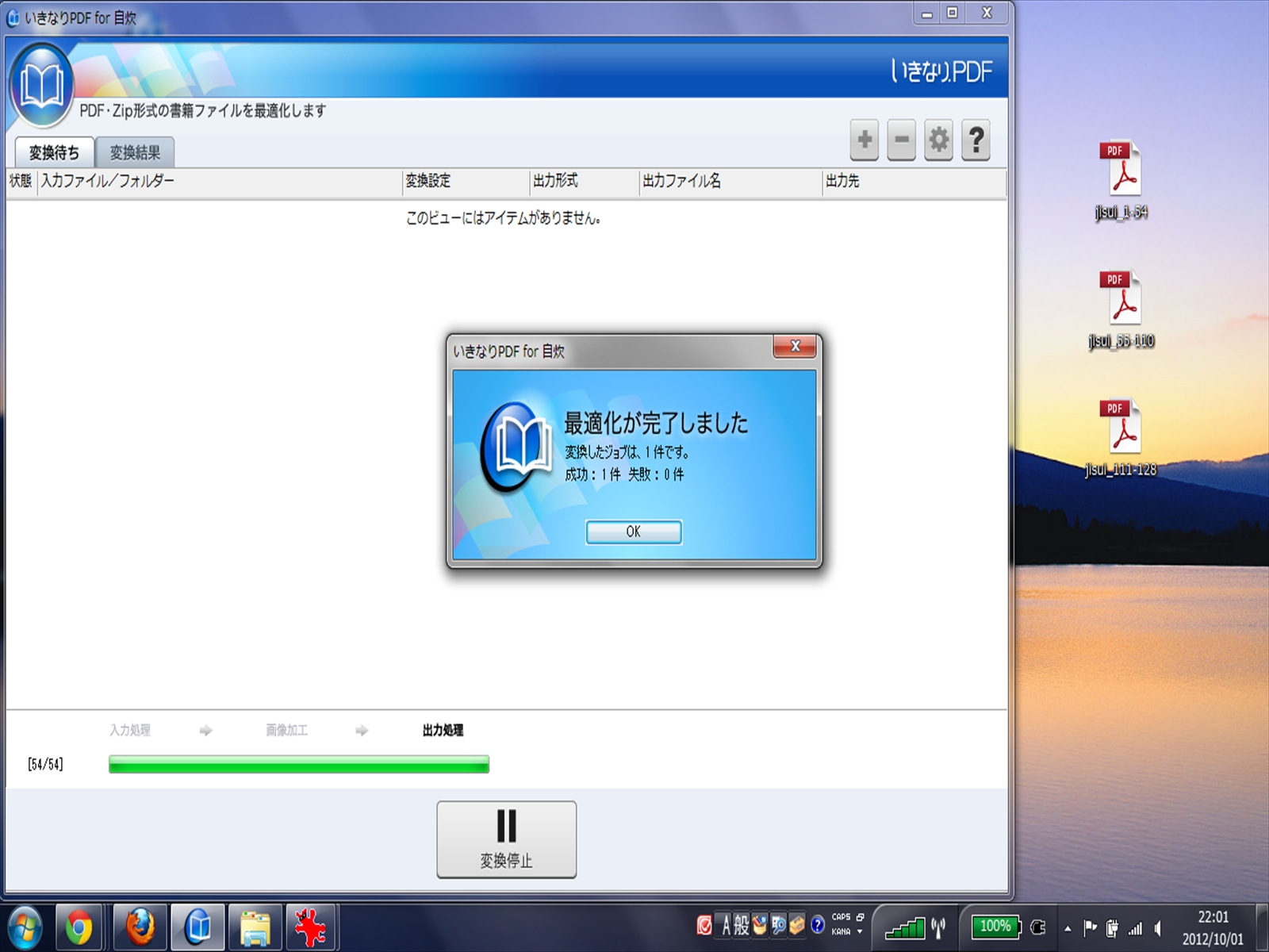 一気にやろうとしましたが、途中すこし詰まったりしたため、3個のPDFに分かれました。