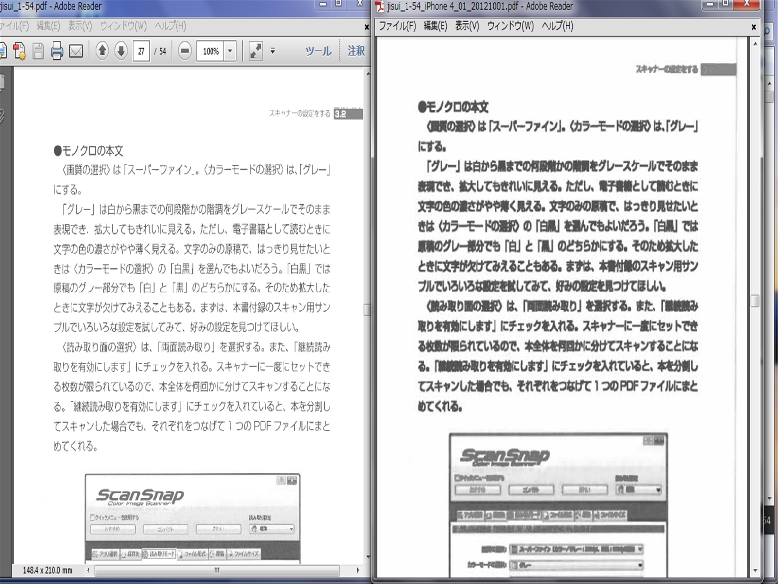 そのままスキャンしたデータと、最適化したデータを読み比べました。