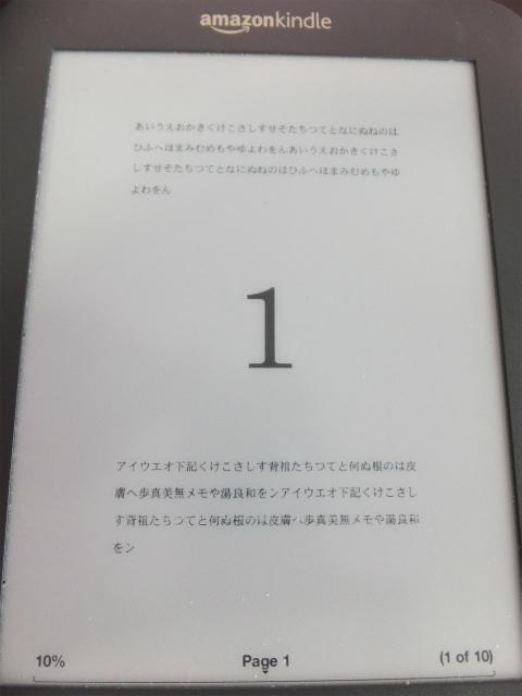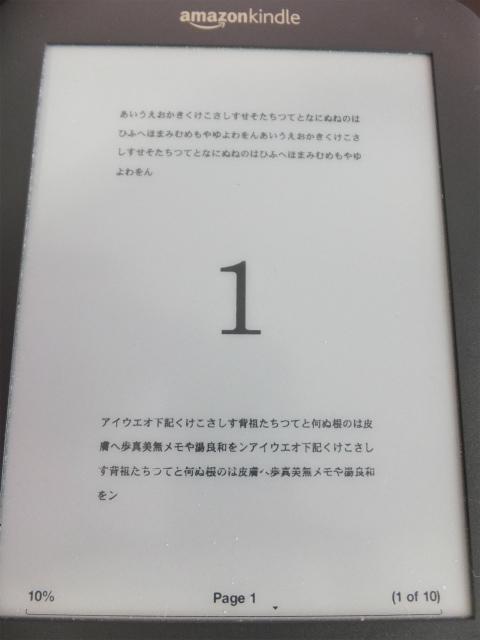 次は標準で用意されているKindle設定です。画像のサイズをkindleの画面サイズに合わせています。原稿のサイズをkindleの画面サイズに合わせるので外側に空白が目立ちます。文字も小さくなった分読みにくいですね。目がいい人なら気にならないかもしれません。ページめくりは1秒程度です。
