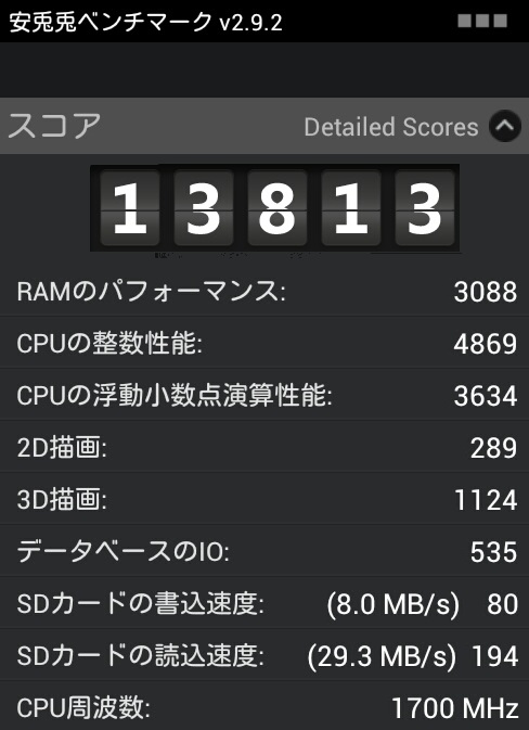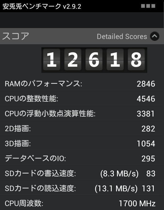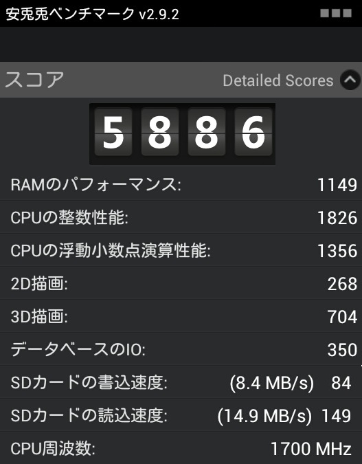 使ったのはAnTuTu 安兎兎ベンチマークです。
