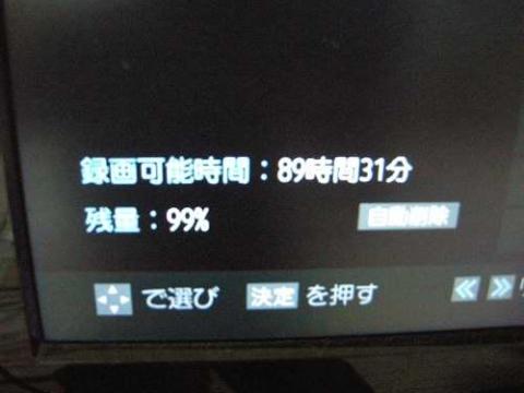 録画記録可能時間がなんと、89時間31分。今まで見たことのない時間です。