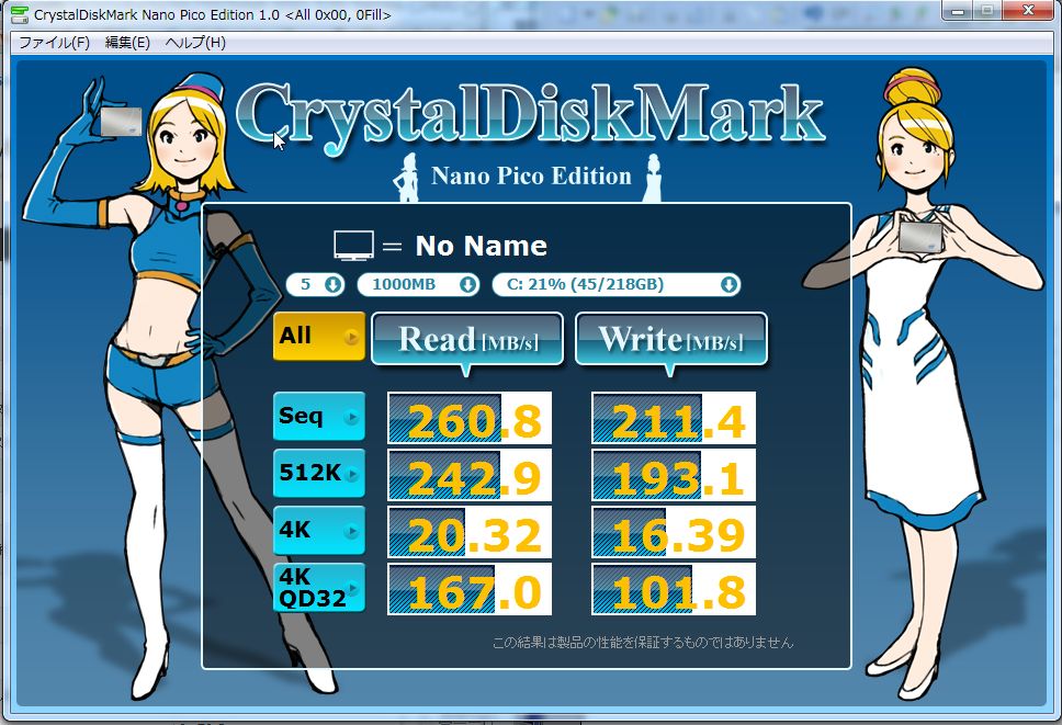 - 課題3.《必須レビュー項目》 オーバープロビジョニングをする前後で CrystalDiskMark Nano Pico Edition を使ったスコアの比較.(必須レビュー項目)