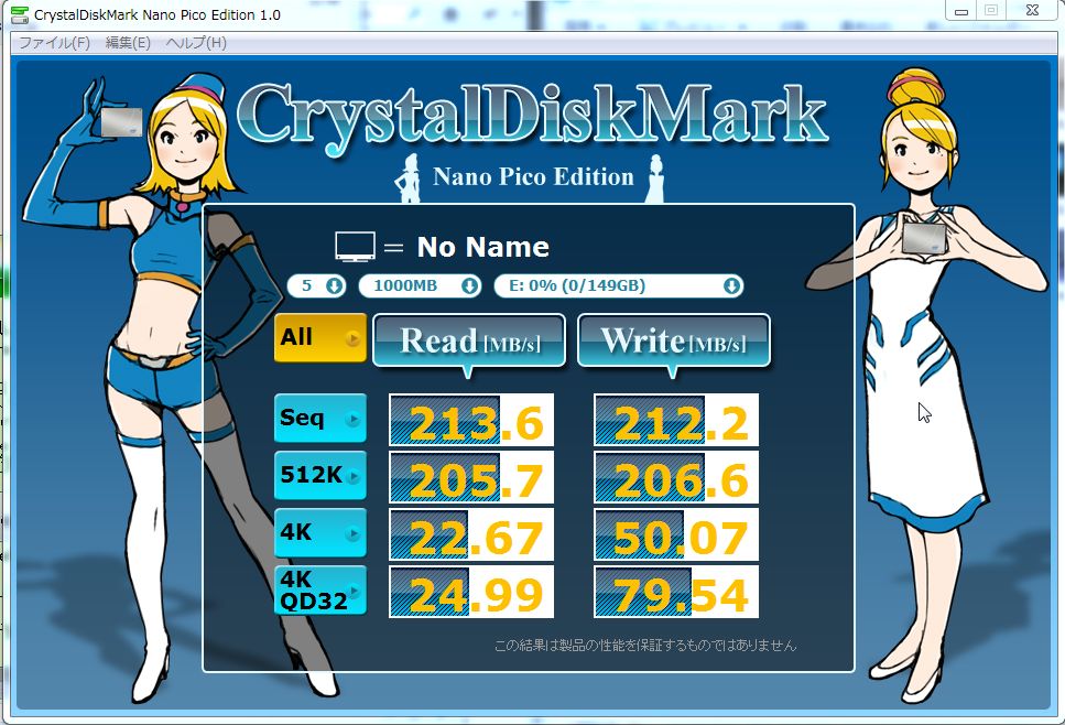 課題3: CrystalDiskMark Nano Pico Editionのスコア比較.