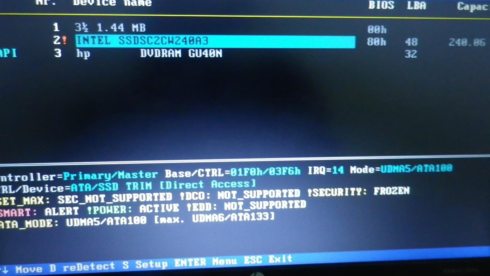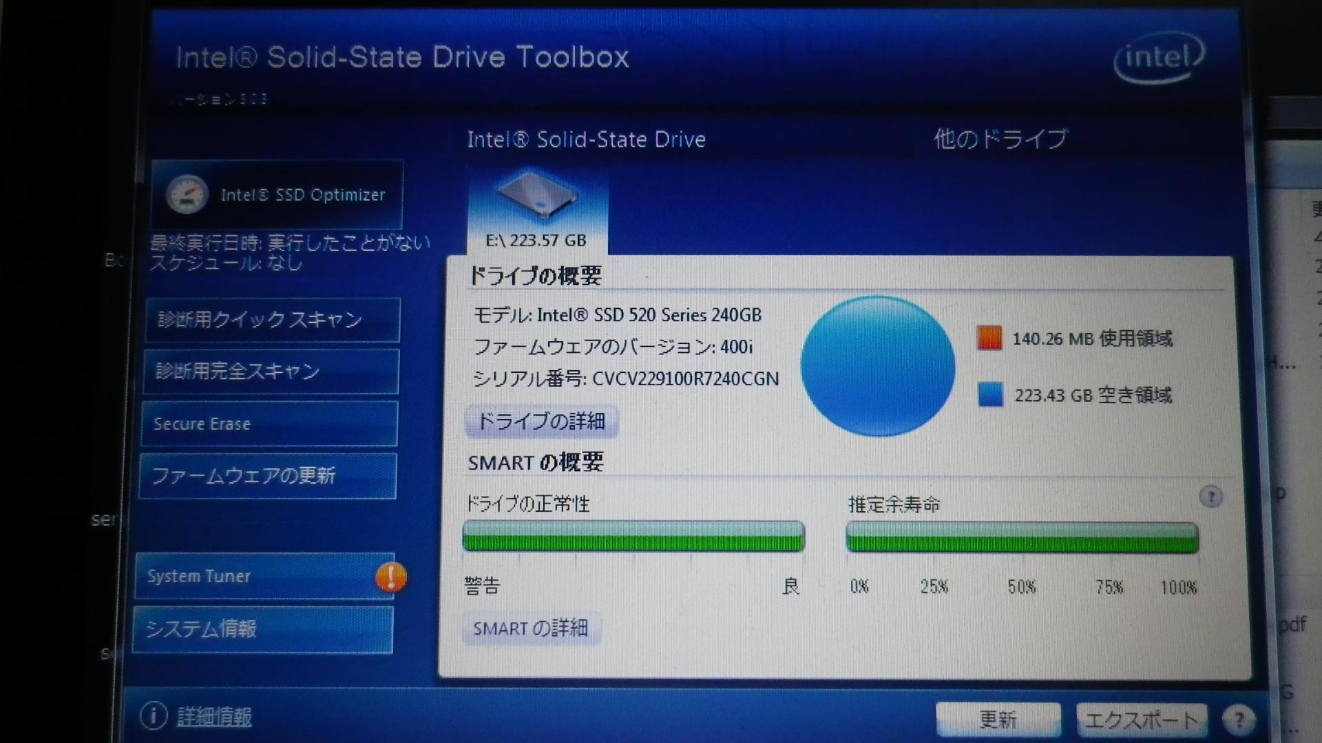 起動ドライブ INTEL SSDSC2CW240A3(レビューの品)