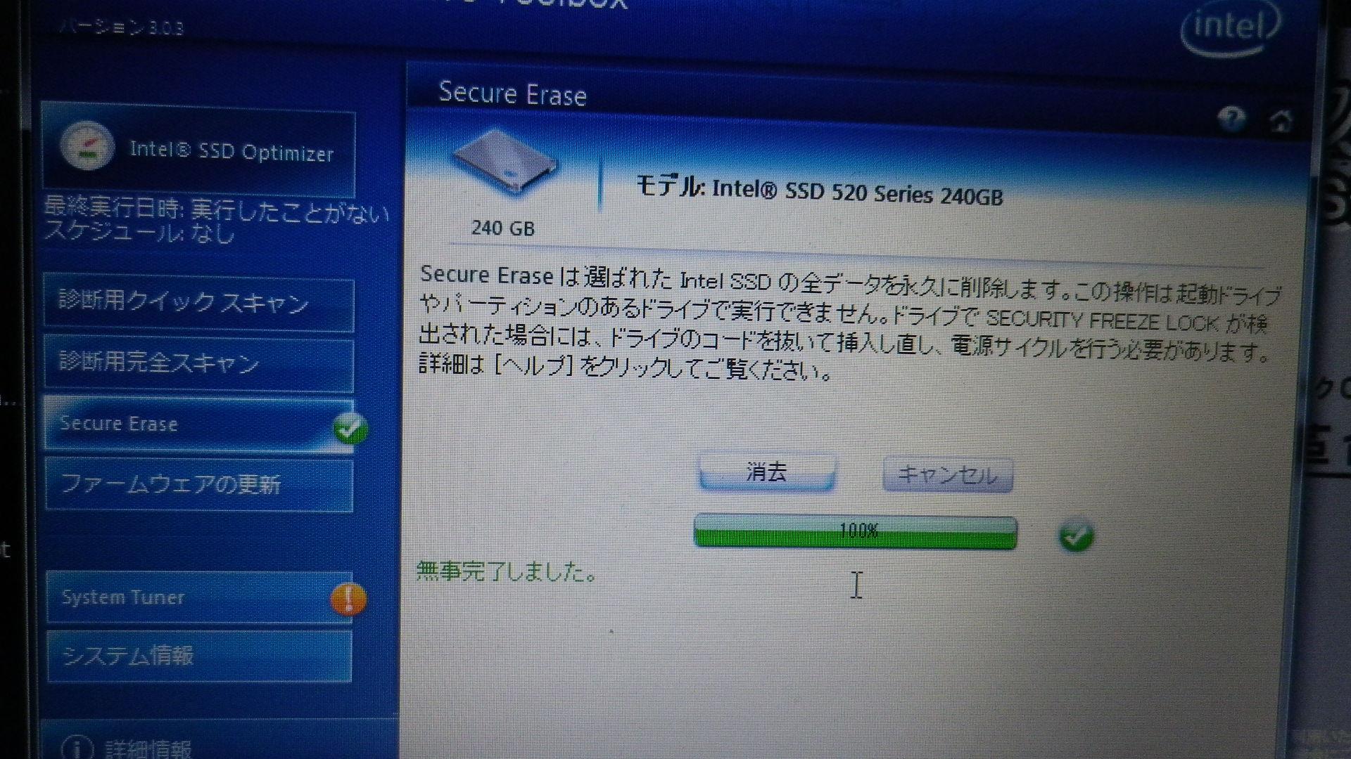 まずはSSDをIntel Tool boxを使ってSecure Eraseします.