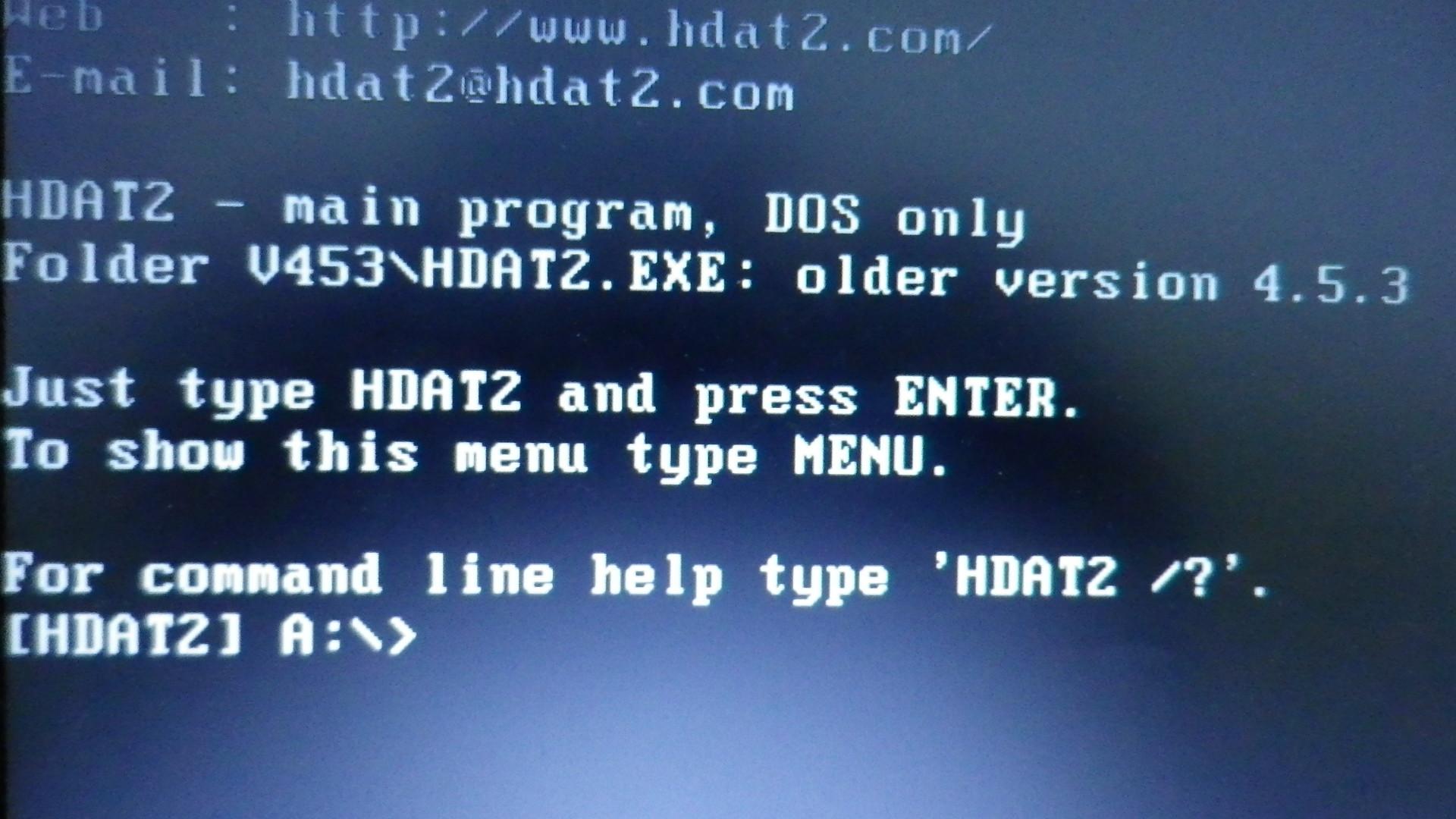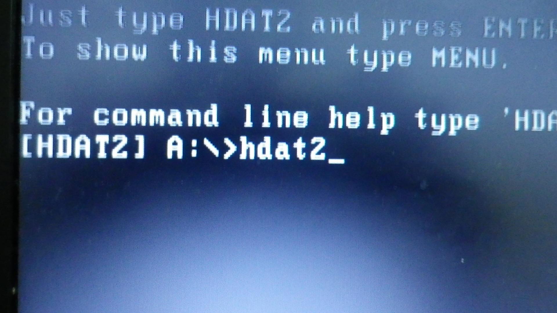 電源を再び落としてCDブートによってHDAT2を起動.以下のような画面が出てきたらhdat2と入力してEnter.