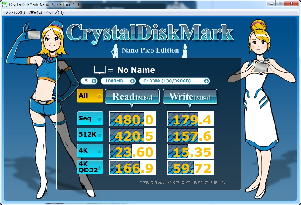 現状、インストールしたばかりと言うこともあり、使い込んだSSD830よりきびきび動いているが、今後の使い込みでオーバープロビジョニングの最大の売りである、速度劣化しにくいという点を見極めたい。