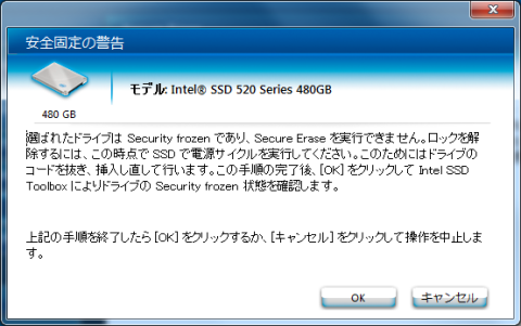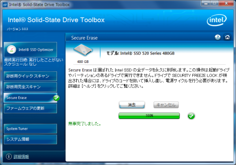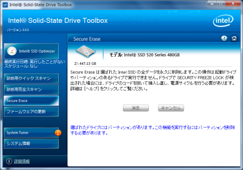 ※intelのToolboxは誤作動防止のためか、簡単に完全消去はできないようになっている。パーティションがあったり、ブートディスクなどではそのままではSecure Eraseはできない。