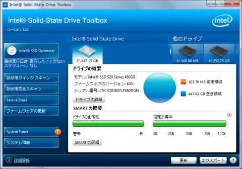 Intel® Solid-State Drive Toolbox(バージョン:3.0.3 2012/8/28 現在)