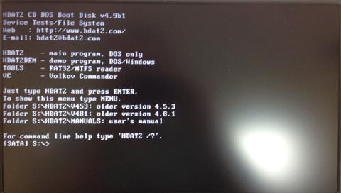 DOS画面が表示される。 HDAT2 と入力し ENTER