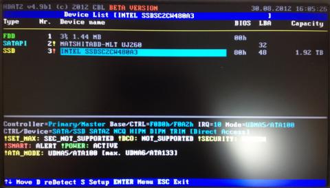 ※ブートディスクにする場合、 IDEで起動して、HDAT2で設定、AHCIに設定を戻し再起動・・・そこからOSをインストールしないと、IDEで動作することになり、SSD本来の速度が出なくなります。私の場合、OSをインストールすることになってしまったので、ご注意を・・・