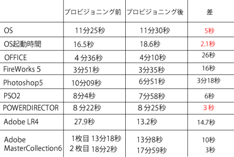 PhotoShopと、 LR4だけが異常に短縮された。4K以下のファイルが多いのか・・・