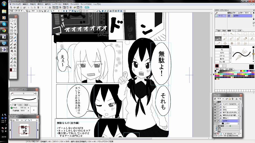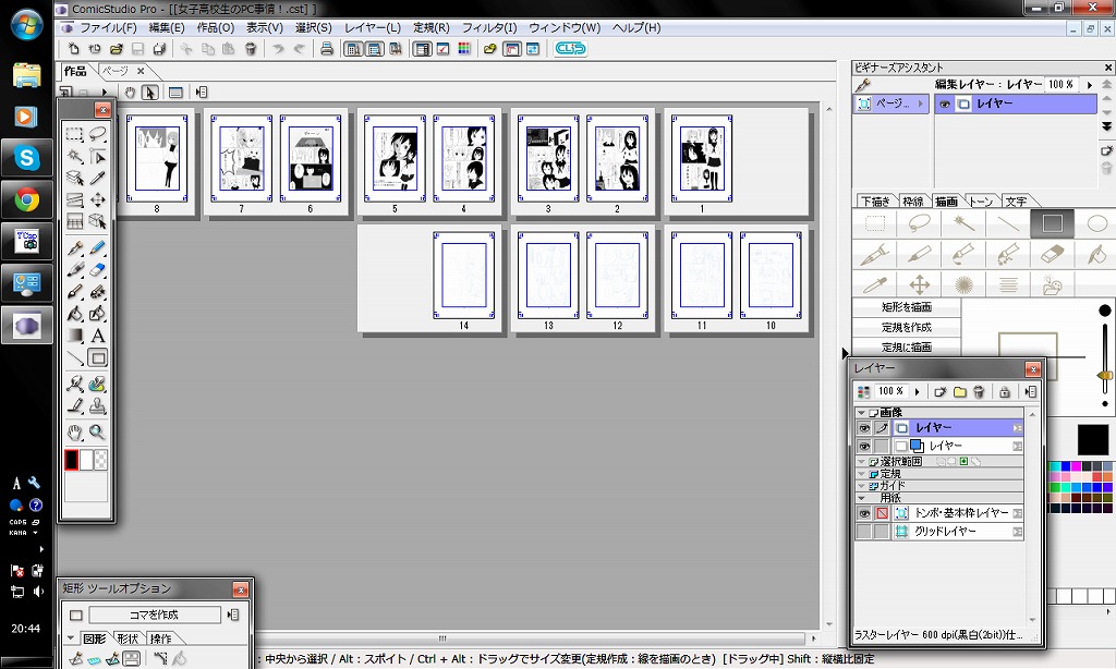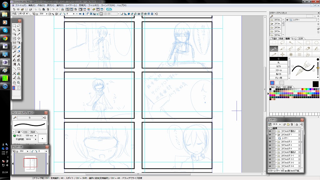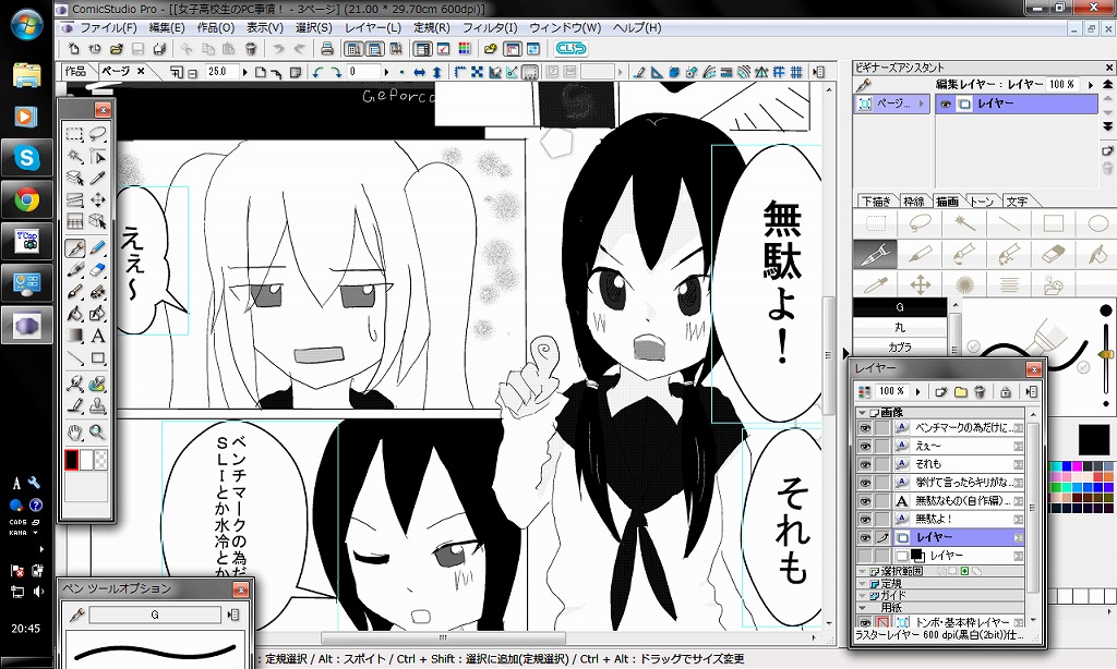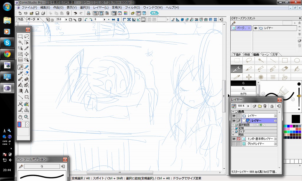 漫画制作は下書き、そして線入れ、塗り、トーン貼り、背景作成等様々な工程が必要ですね。