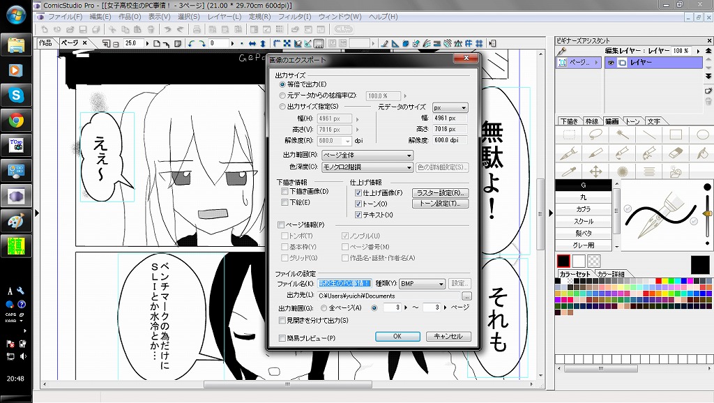 コミスタMiniには無かった、様々な形式での保存が可能になり、製作の幅がぐんと広がっています。