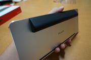 キーボードカバーは本体と同じくらいの重さ(約200g)があり、かなりしっかり分厚いゴムでできています。キーボードカバーがそのままタブレットスタンドになります。