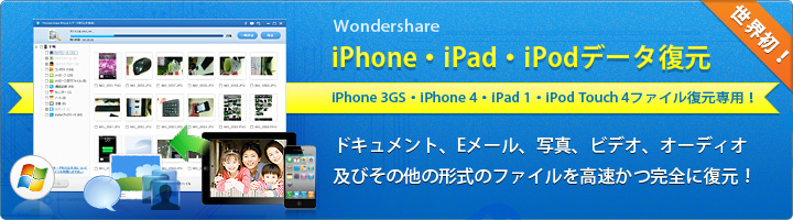 Wondershare iPhone・iPad・iPodデータ復元(Windows版)は世界初の一般ユーザのためのiPhone、iPad、iPod Touchのデータ復元ソフト!