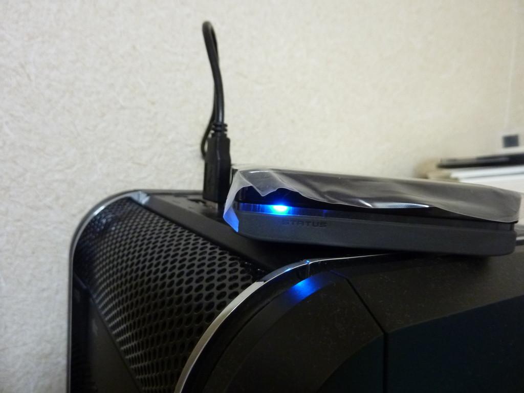 USB2.0で接続している為LEDランプは鮮やかな青です。