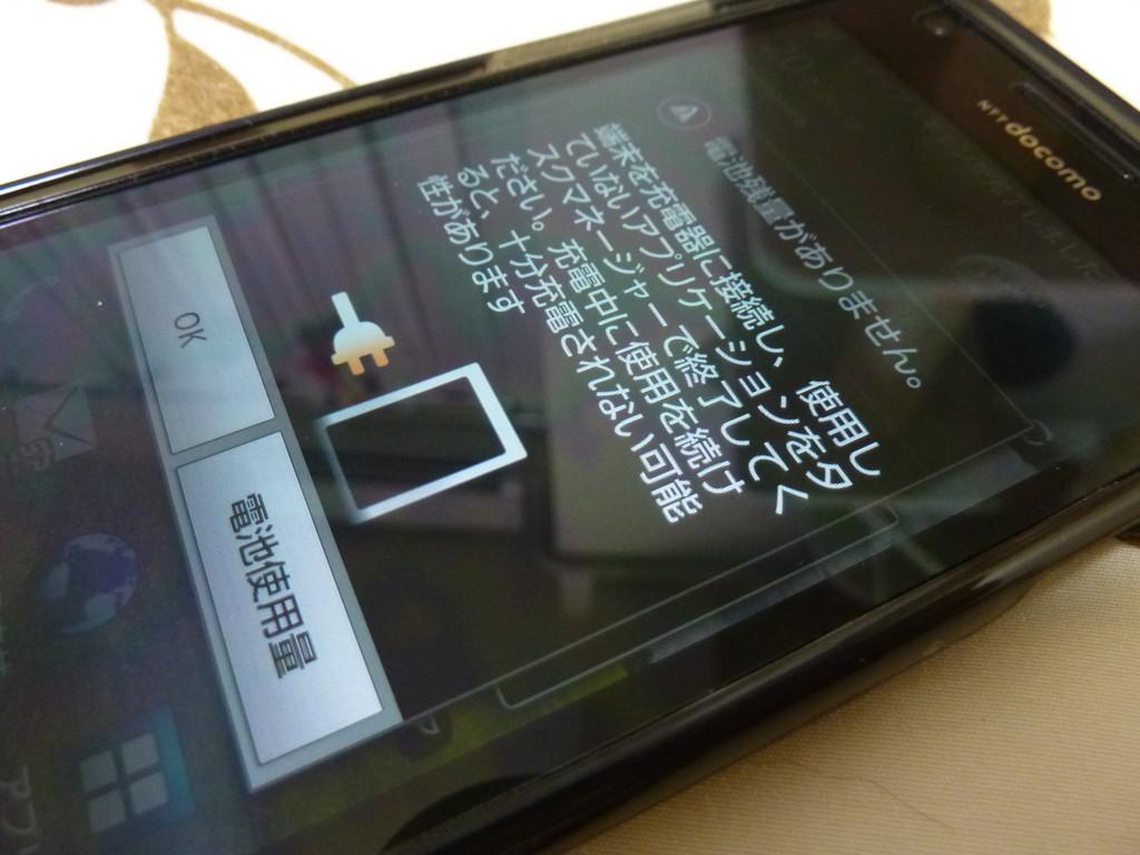 今回のレビューの為にスマートフォンのバッテリーを空にしてみました><