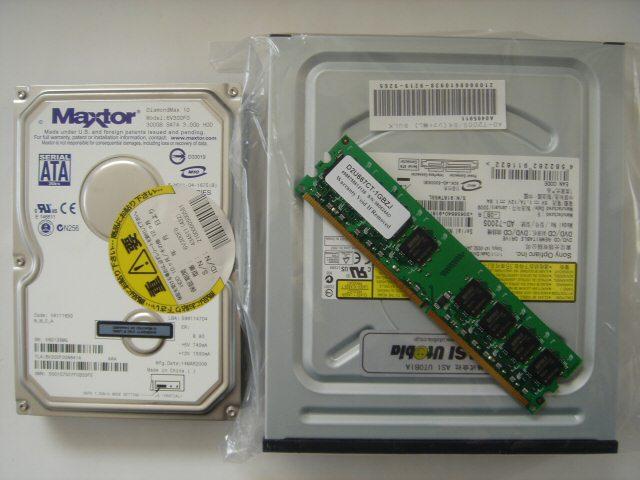 届いたので弄ってみましたよ。今回使用したパーツは部屋の隅っこをほじくって発掘したWesternDigitalWD3200SDとSAMSUNGPC2-5300U1GB光学ドライブはIDEの物し...