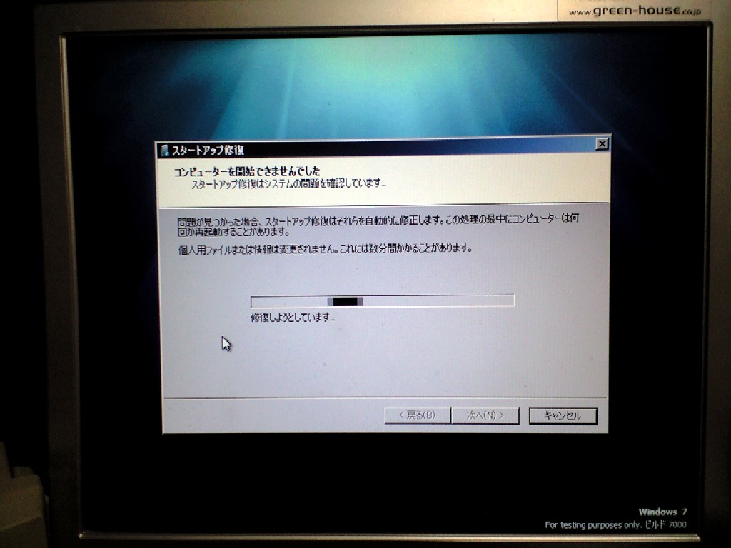 修復機能でもお手上げ、システムの復元の復元ポイントも作成されておらず、