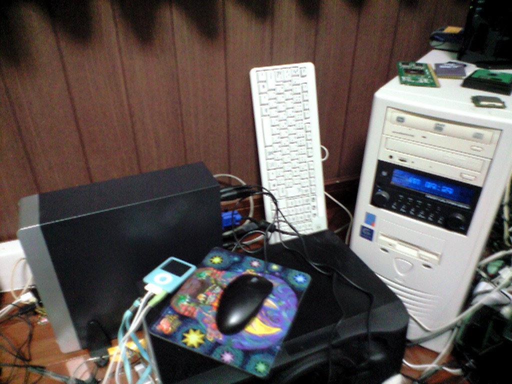 その傍らにおいています。周囲はケーブル類がミミズのように