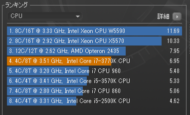 i7-3770kの方が遅いですね。。。何度かやってみましたが同じ結果でした。
