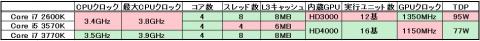 よって今回は、「Core i7 3770K 搭載のHD4000」 と「Core i5 3570K搭載のHD4000」の比較をメインにレビューを行っていきます。