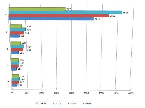 今回Core i7 2600KとGT540Mの詳細なスコアの画像を貼ると長くなり読み難いと判断したので、この2つの詳細スコアについてはCore i5 3570Kのレビューページを見てください。