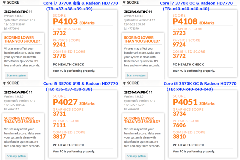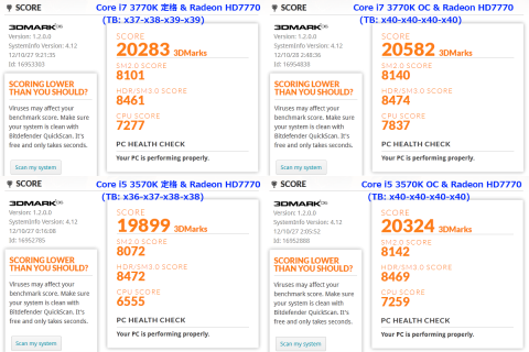 CPU ScoreはCore i7-3770K定格がCore i5-3570Kをわずかに上回っています。