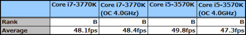 Core i7-3770Kの定格動作でもCore i5-3570KのOC動作時より高いスコアになりました。