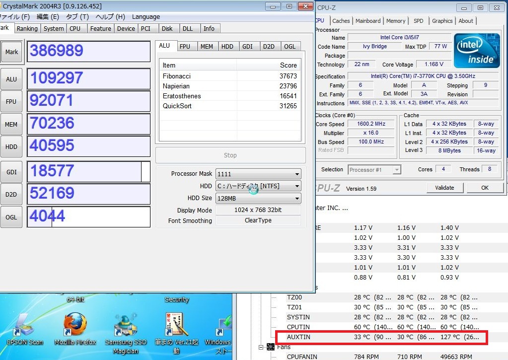 49倍CDM中に再びCPU温度警告が。この警告、精神的に良くないので、出ないようにしてもらえないですかね(マテ