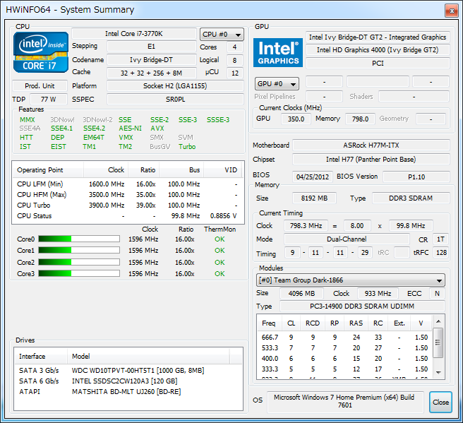 メモリについてはDDR3-1866をUEFIで1333、1600と切り替えています。