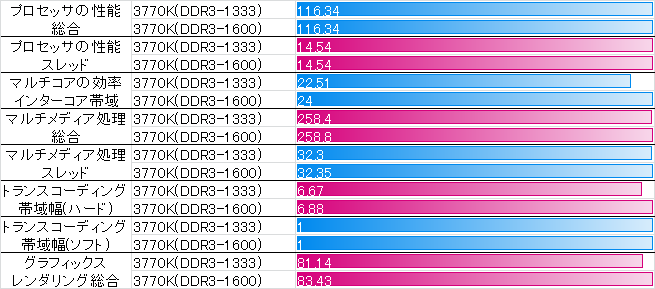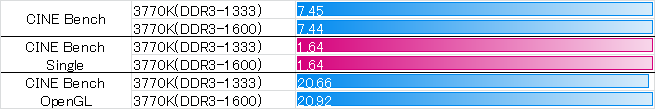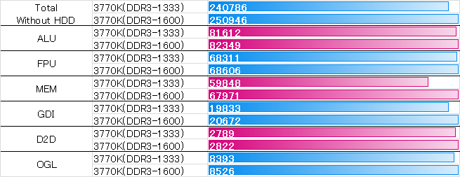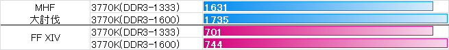 次にメモリをDDR3-1333->DDR3-1600に変更してどれだけ性能が向上するのか、です。