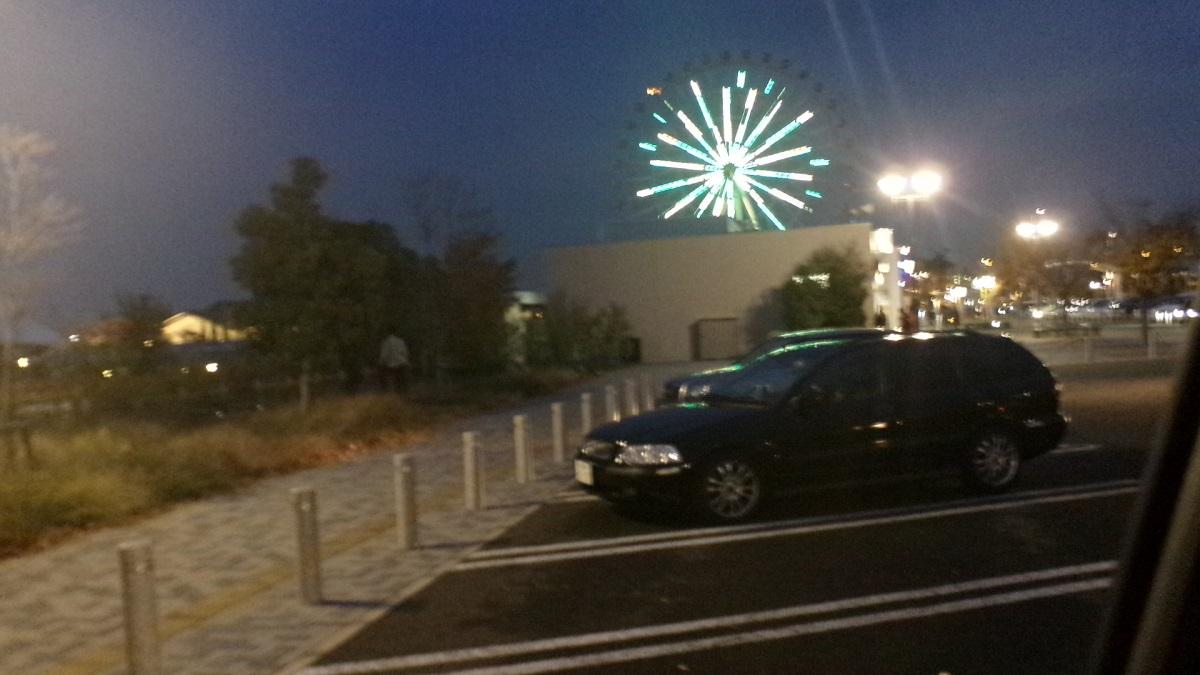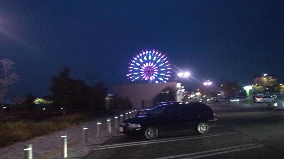 日没後、SA内にある、観覧車がライトアップされていたので、撮って見ました。