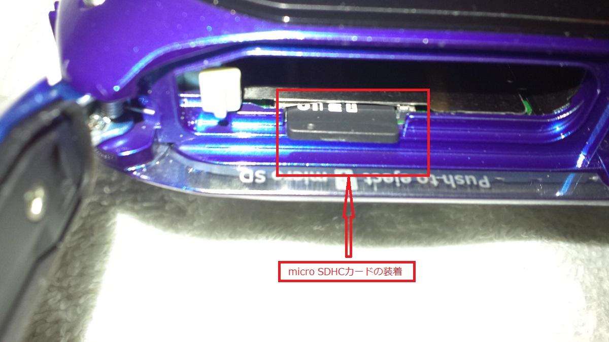 この時注意することは、電池の向きと、MicroSDHCのClass 6以上の物使用することです。