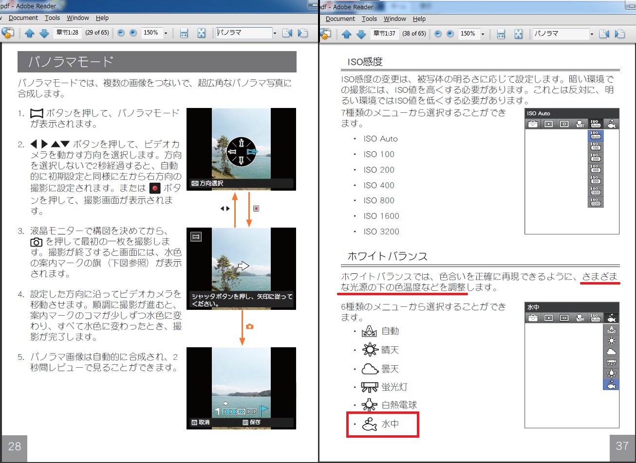 ◆水中撮影、マクロ撮影、連写機能、パノラマ機能など