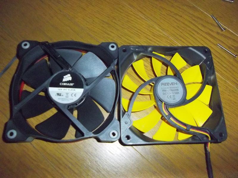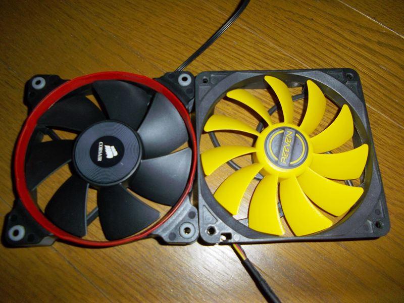 ケースに入れた状態で動かすと、結構な体感差があり、SP120 HIGH PERFORMANCE EDITIONに変えることで、冷却性能を殆ど落とさずに、騒音が小さくなりました。