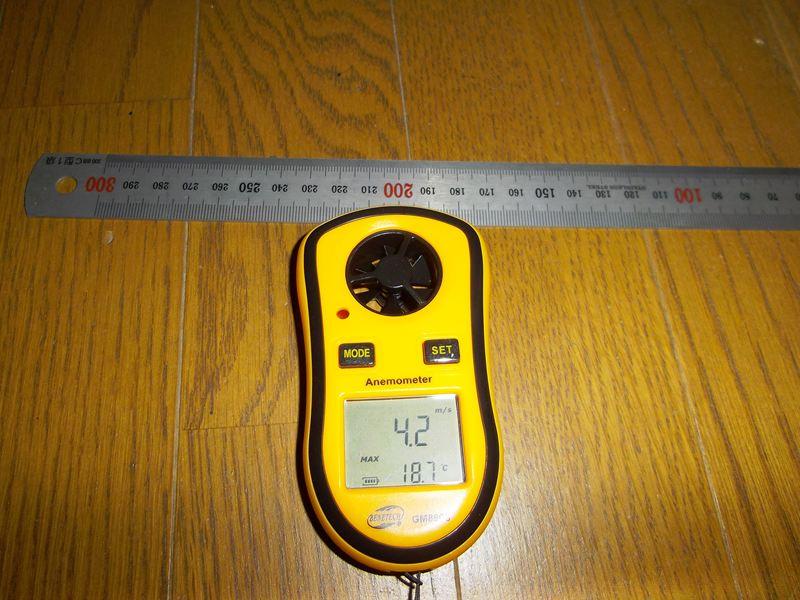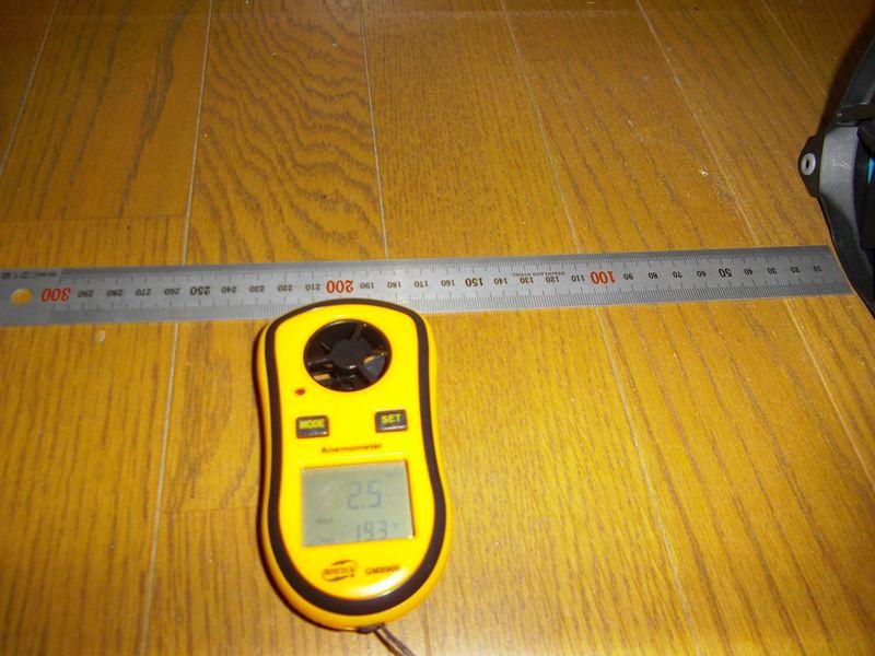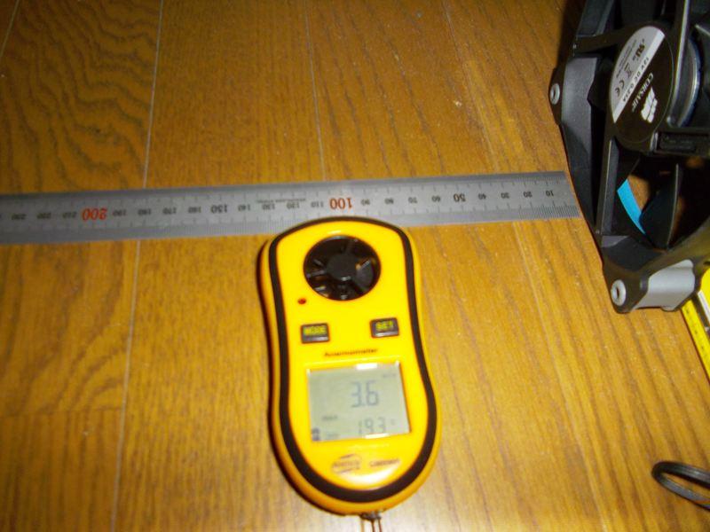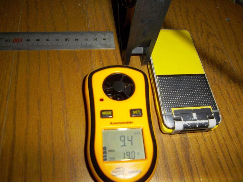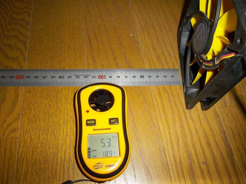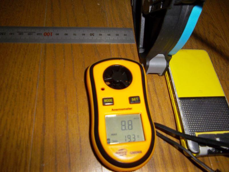 ファンの排気側にくっ付けた状態で中央からファン周辺の最大値を計測。