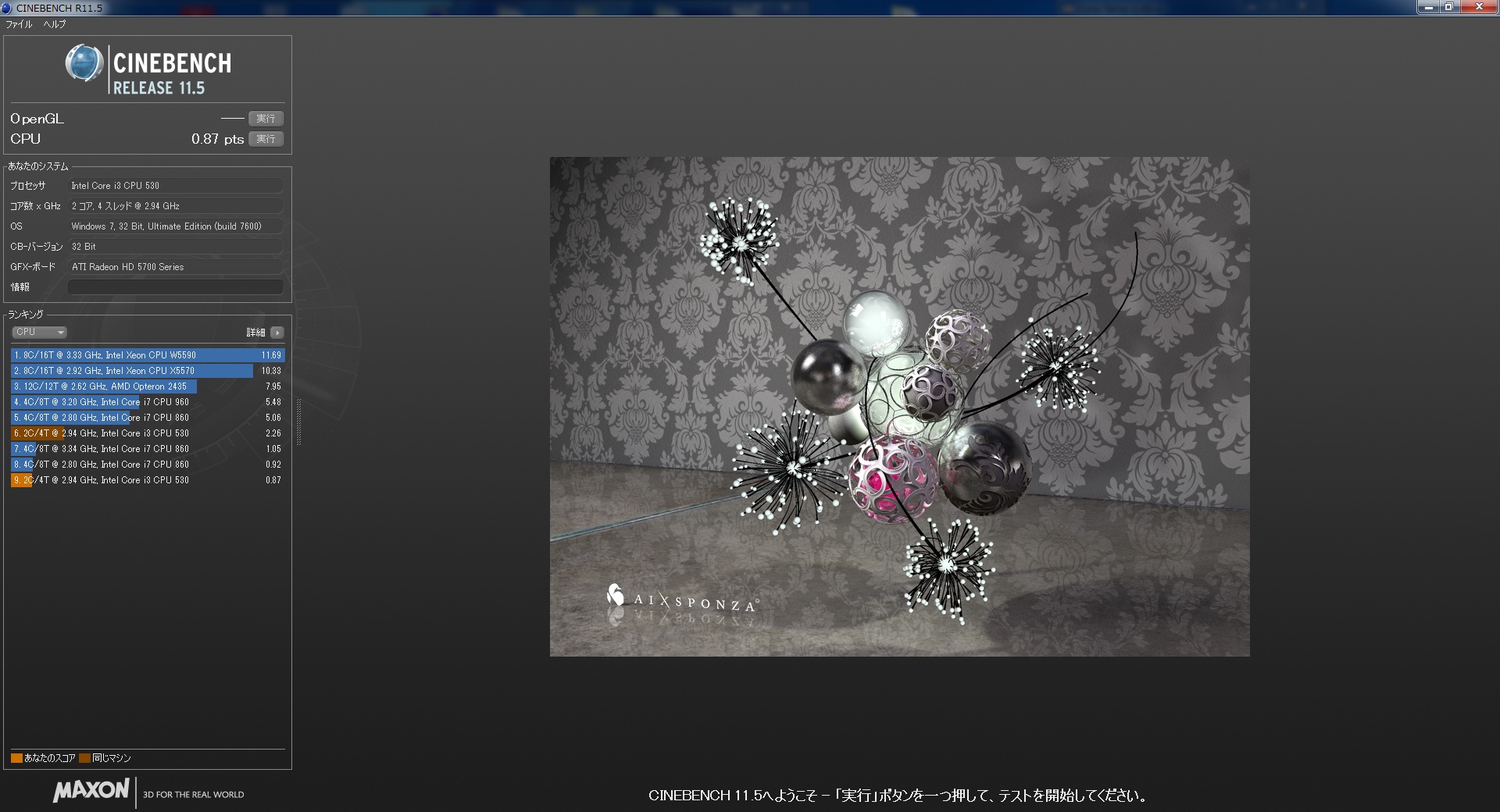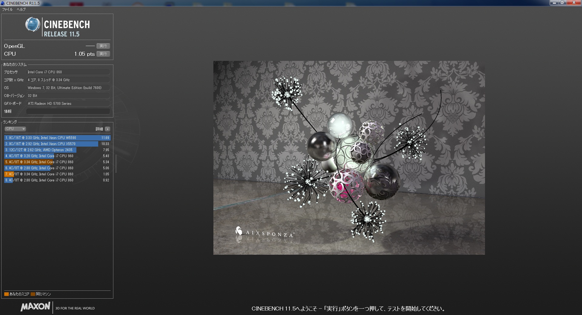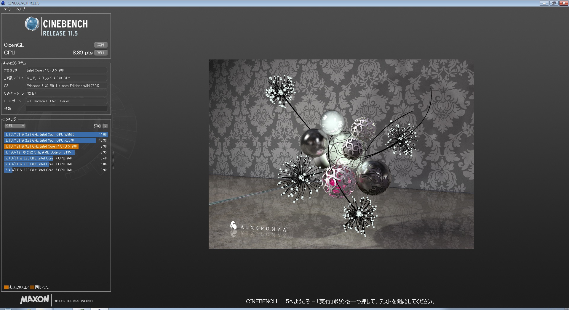 やっぱりスレッド多いのは全く違い増すねぇ。Cinebench見ると、ストレートに数値が違いますぞ。
