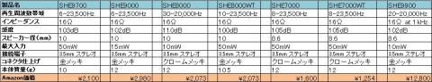 SHE8000より下はコネクターがクロムメッキですね、最大入力、再生周波数帯域が違いますが、価格はあまり変わらないので、SHE9000以上を選択すべきでしょう