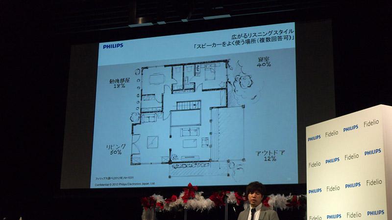 リスニングスタイルについては、昔はリビングなどが中心であったのが、今では寝室40%、リビング50%のほか勉強部屋18%、屋外12%とスピーカーで音楽を聴く場所が増えているとのことです。