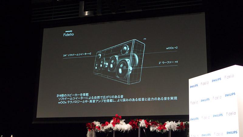 wOOxテクノロジーを司るスーパーウーファーユニット×2、ウーファーユニット×4,ツイーターユニット×2の計8つのユニットを搭載しており、豊かな音場を表現することが可能。