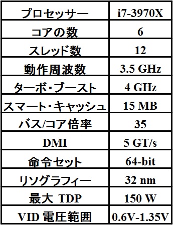 マザーボード以外の構成はi7-3970Xと同一にて行いました。
