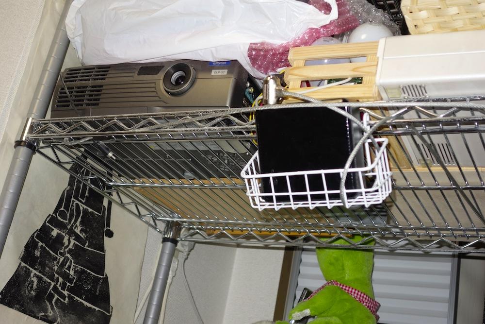 盗難防止ワイヤーとカラピナで落下防止用に縛っておきました.