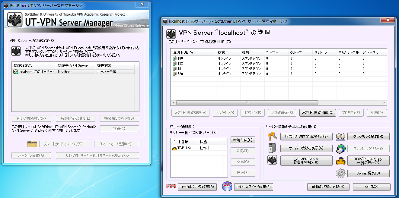 ソフトイーサ株式会社と筑波大学が開発した,UT-VPN(フリーソフト)を使用.