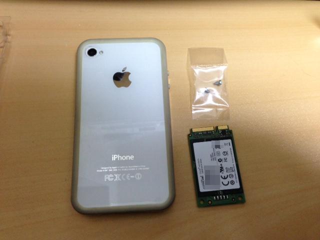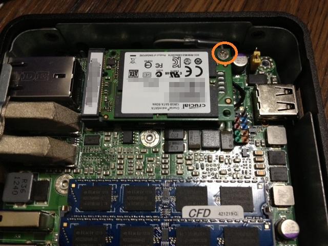オレンジ部分のビスをとってからmSATAのSSDをつけます。