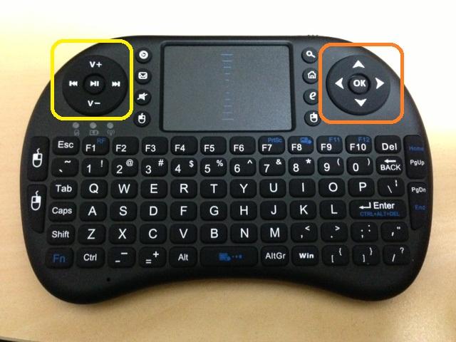 キーボードの黄色で囲ってある部分で映画などの操作が簡単に行えますので