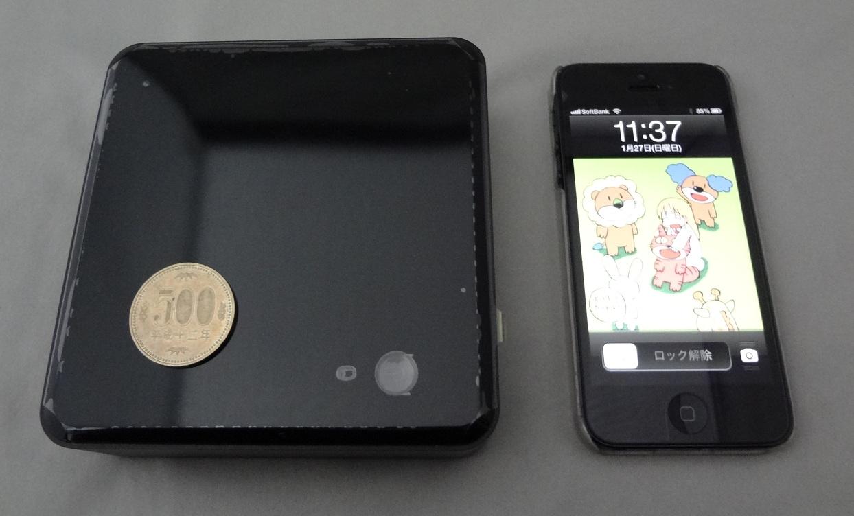 4.5インチとか言われてもよく分からないので、500円玉とiPhone5を並べてみましたが、非常に小さいですねぇ。