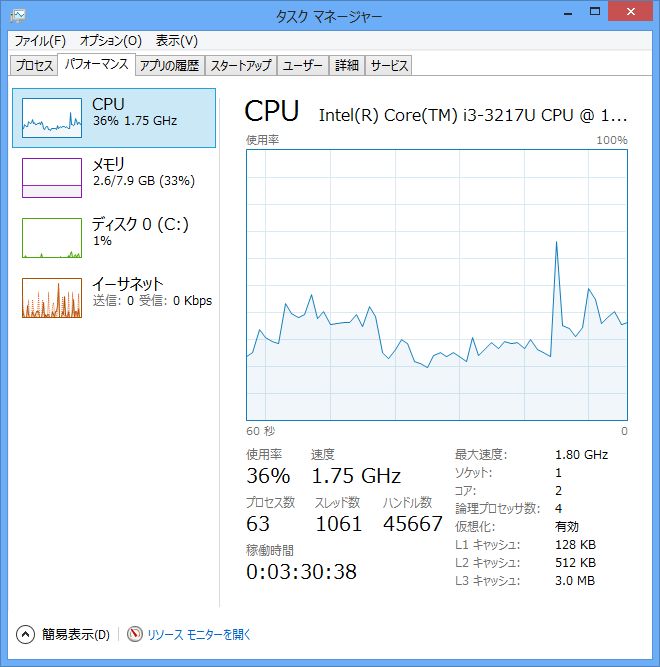 こちらもCPUにはほとんど負荷がかかってません。